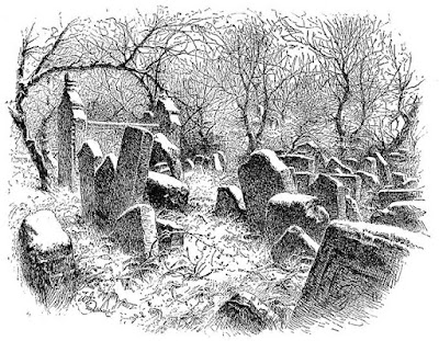 Lo primero que llama la atención a los héroes al acercarse a la ciudad de los 6 puentes es una serie de montículos y tumbas fuera de los muros. En esas tumbas, 5 lápidas rústicas llevan inscriptas el nombre de quienes estuvieron perdidos por semanas en el Bosque Encantado, lo que ya intriga a los pjs. ¿los dieron por muertos?