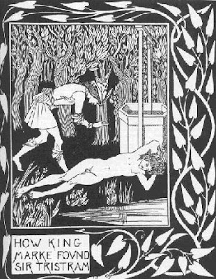 En el proceso de leer La Muerte de Arturo, me encontré con un capítulo en el arco de Sir Tristán, en el que este caballero enloquece tras encontrar unas cartas entre Isolda la Bella y Kehydius, abandona la vida honrosa y civilizada de un caballero y vive desnudo en el bosque, ayudado por damas y por pastores por 6 meses.