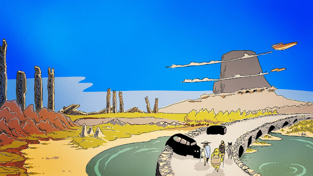 Cruzan las ruinas Azur y rodean unas colinas, alejándose del mar circular y camino a ciudad violeta. A mitad de camino, despiertan algo adoloridos y cansados de un sueño extraño, y Sándalo nota que perdieron 4 días sin saben cómo. En el bolsillo de Scifer, hay una carta de agradecimiento por sus servicios de un gato, y 5 monedas. Unos días después, se cruzan con una comitiva que lleva a un gato. Scifer intenta acercarse sin éxito, un mercenario abre fuego disuasivo con su rifle, y deben alejarse del camino para que pasen. La cosa no pasa a mayores, por suerte, y Sándalo comprueba, por unos pelos que se guardó, que el gato que se cruzaron no es el que usó sus servicios por 4 días.