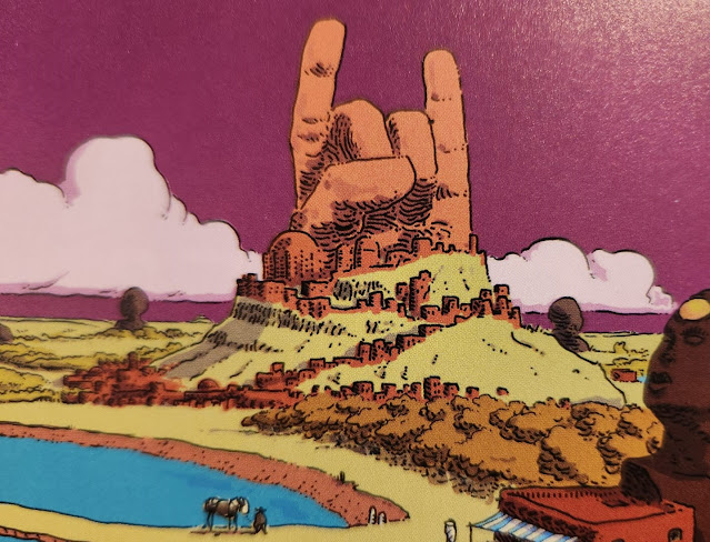 Al entrar a Ciudad Violeta, examinan brevemente los asentamientos de pieles azules en los alrededores de la ciudad, y cruzan uno de los 5 puentes hacia la ciudad, no sin anguastiarse Sándalo por el pecaminoso estado de los exiliados pieles azules. En las puertas de la ciudad, los examina una anciana sin ojos y muchos gatos, y les comunica que cuando vuelvan, ya como caravana y con cosas para vender, tendrán que pagar impuestos municipales según el peso de sus mercancías.